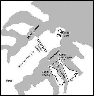 Турецкий флот подошёл к Мальте 18.05.1565. Кораблями командовал Пияле-паша, сухопутными войсками — Лала Мустафа-паша. 40-тыс. армия прибыла на более чем 200 судах, включая 130 галер, 30 галеасов и 11 парусных торговых судов. Назначение этих двух командующих являлось ошибкой султана Сулеймана: Пияле-паша и Лала Мустафа-паша ненавидели друг друга.