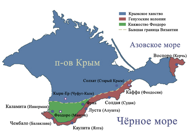По договору 1381 года хан Золотой Орды Тохтамыш, в благодарность за помощь против Мамая, отдал во владение Генуэзской республике побережье Крыма. Это поставило в невыгодное положение находившееся в вассальных отношениях с Ордой княжество Феодоро, которое оказалось отрезано от морских портов. Недовольный таким положением, князь Феодоро Алексей I решил начать борьбу за выход к морю. В 1422—1423, заручившись моральной поддержкой эмира Крымского улуса Золотой Орды, он начал военные действия против Генуи. Эта война не принесла феодоритам особого успеха, однако князь смог построить на побережье крепость-порт Каламиту.